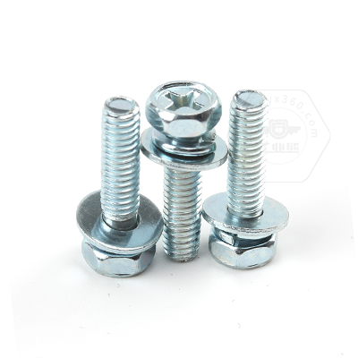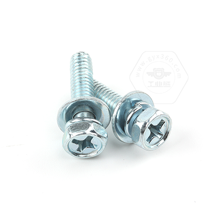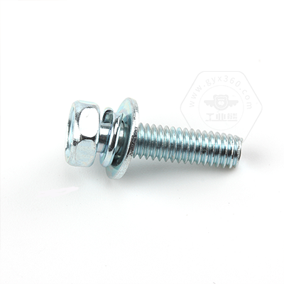 工業(yè)熊碳鋼8.8級(jí)藍(lán)白鋅48h十字槽凹穴六角頭帶平彈墊組合螺釘GB9074.13