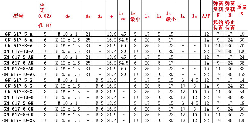 產(chǎn)品型號(hào)為GN617,不銹鋼材質(zhì)型號(hào)為GN 617-NI。